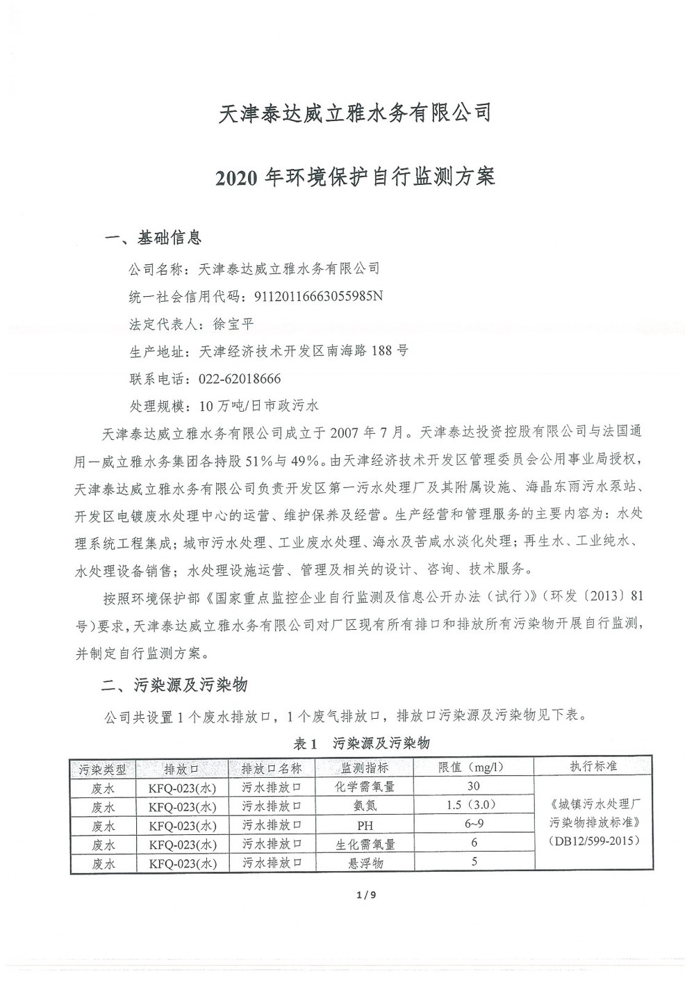 2025年第3季度環境信息公開:天津泰達威立雅水務有限公司