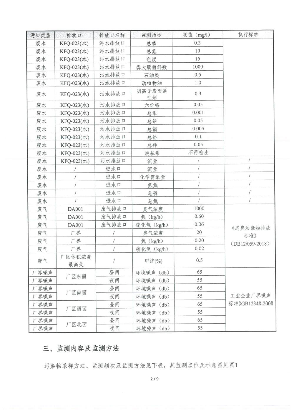 我公司排放口數量為一個,位于廠區東南側。處理后出水排入市政專用排污管道,經北排泵站排入渤海灣。2025年7-9月我公司COD、氨氮、總氮、總磷排放總量如下: